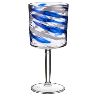 A pack of four stylish wine glasses, with elegant aquatic swirls and an elegant stem.