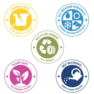 Made from recycled rubber tyres, these planters are not only eco-friendly but virtually indestructable. They will not crack, fade, stain or rot.