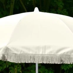 Relax in style under this printed parasol. Powder coated steel frame. Folds away for easy storage. Water repellent.